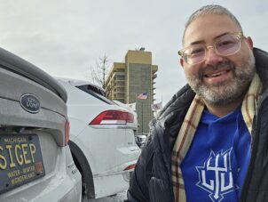 7. At the conclusion of the 2025 Chicago Carlson Leadership Academy, Sam Moschelli, Lawrence Tech ’00, took a moment to pose beside his personalized license plate before heading home.