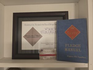 3. This handmade plaque displaying SigEp’s shield was a gift to Rev. Marvin Samiano, CalPoly-Pomona ’86.