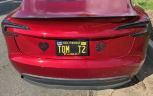 2. Tom Wiggins, CalPoly-Pomona ’84, and his wife have had custom SigEp decals made for several of their cars over the years, including their 2024 Tesla Model 3 Highland.